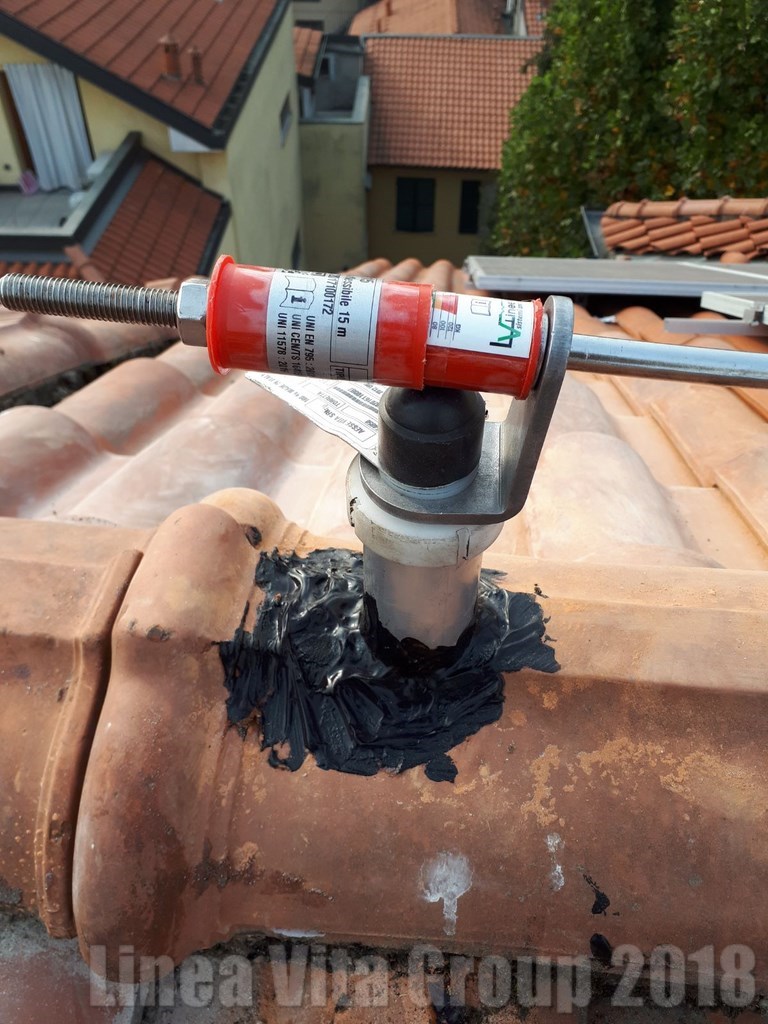 Installazione di linea vita in provincia di Milano dove in ns installatore NON ha SPACCATO il colmo (come fanno molti ns concorrenti). Abbiamo fissato i nostri prodotti con chimico anche nel legno. Il corpo freddo è così inserito nella Trave di Colmo e con il passare degli anni non subisce alterazioni e il legno non marcisce.